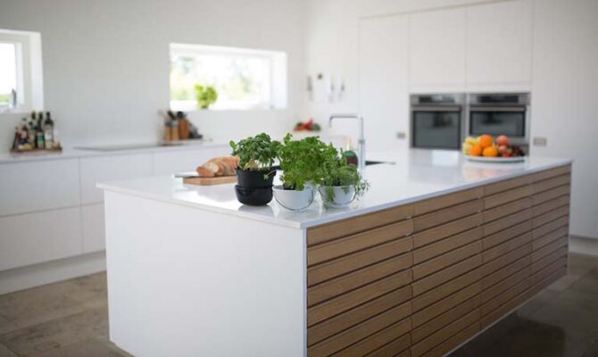 Huge stone islands look dramatic on the TV screen and add a wow-factor to your kitchen, but they are extremely expensive, can dominate the space and reduce the practicality of your kitchen, for example reducing space for your dining table.